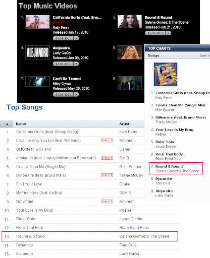 “Round & Round” teve seu lançamento oficial ontem na loja virtual Itunes e está indo cada vez melhor! A música estreou ontem em #50, hoje de manhã estava #32 e agora está em #13, no Top200 Geral do Itunes! E o clipe está em #2, somente perdendo para Katy Perry com California Gurls. No ItunesPop a música esta em #7 e o clipe continua em #2 perdendo para Katy Perry.